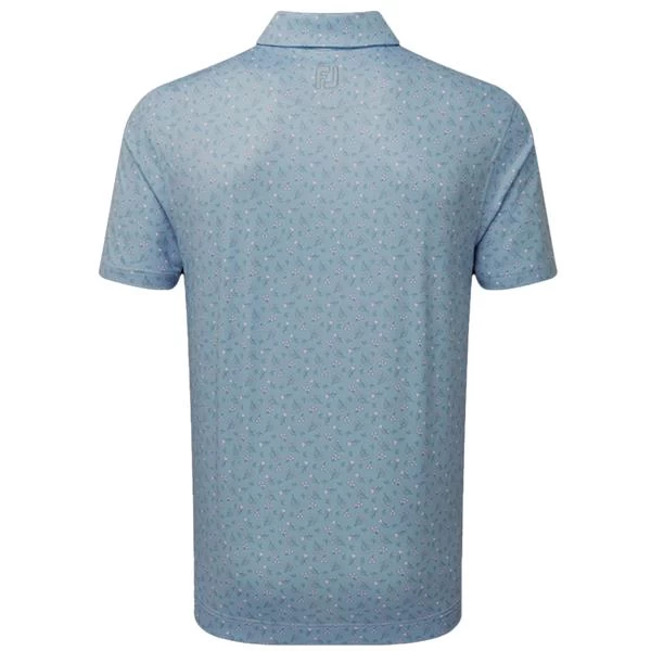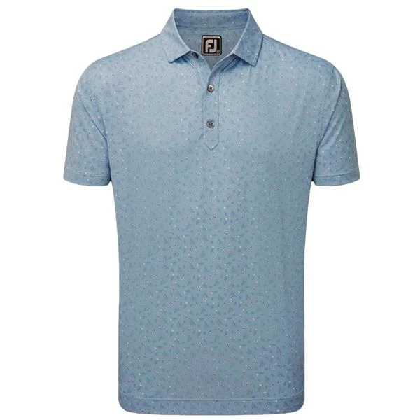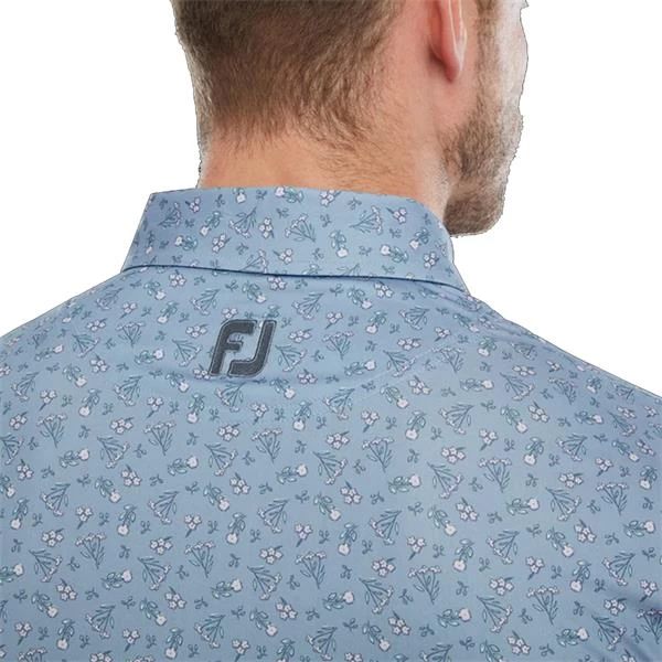 FootJoy Gents Mini Floral Lisle Polo Denim Dusty Purple Azure