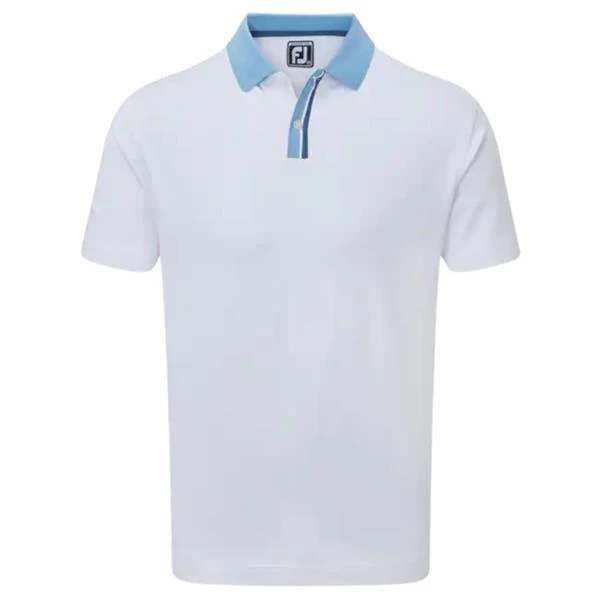 FootJoy Gents Solid Stripe Placket Pique Shirt White – Blue