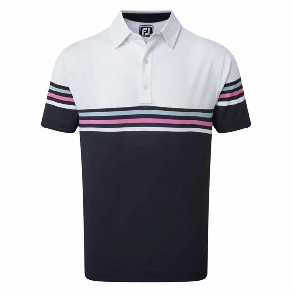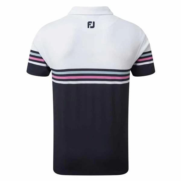 FootJoy Gents Strech Pique Colour Block Polo Shirt White – Navy 90365