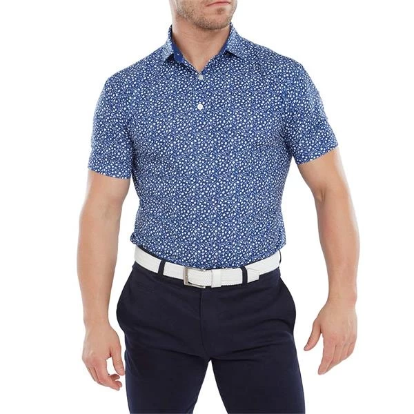 FootJoy Gents Tossed Tulips Lisle Polo Shirt Twilight – White