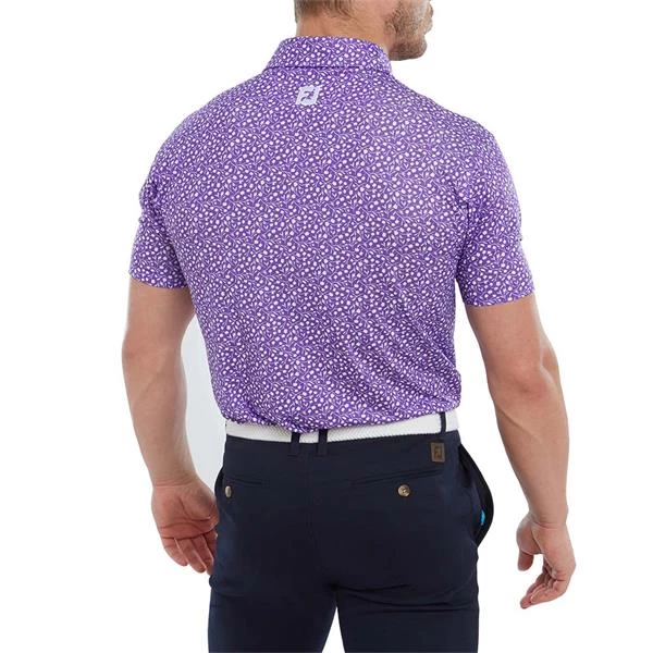 FootJoy Gents Tossed Tulips Lisle Polo Shirt Violet – White