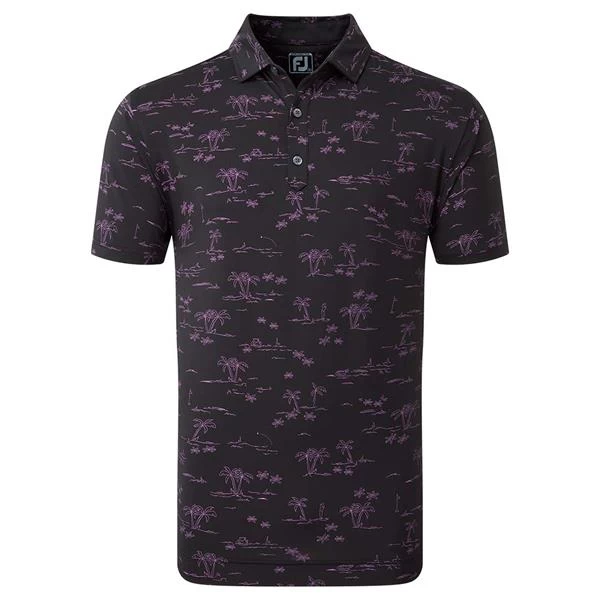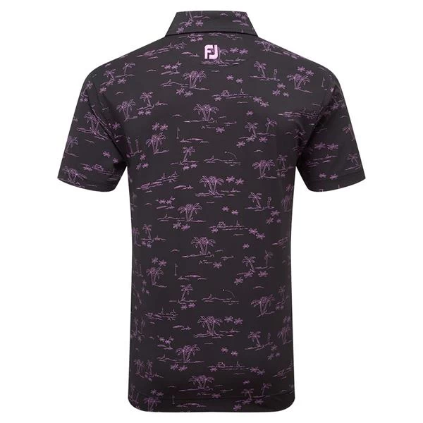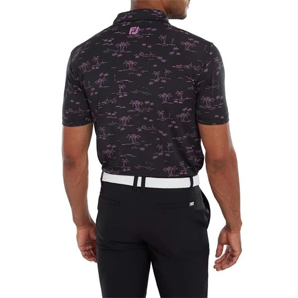 FootJoy Gents Tropic Golf Print Polo Shirt Black Orchid