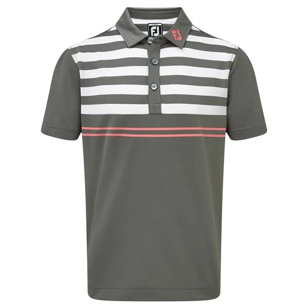 FootJoy Junior Pique Engineered Stripes Top Green – White 96077