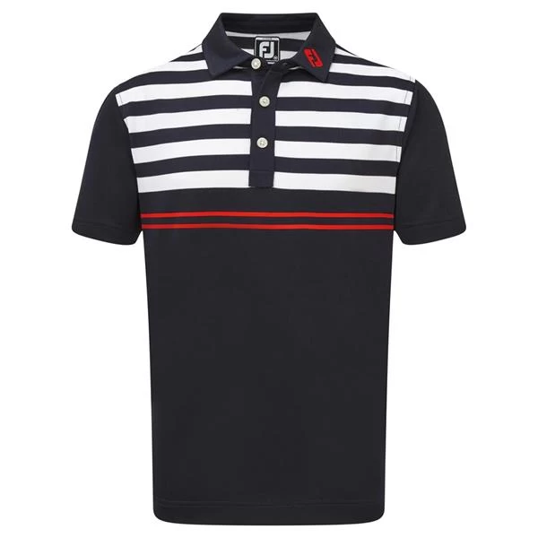 FootJoy Junior Smooth Pique With Graphic Stripes Polo Shirt Navy -White – Scarlet