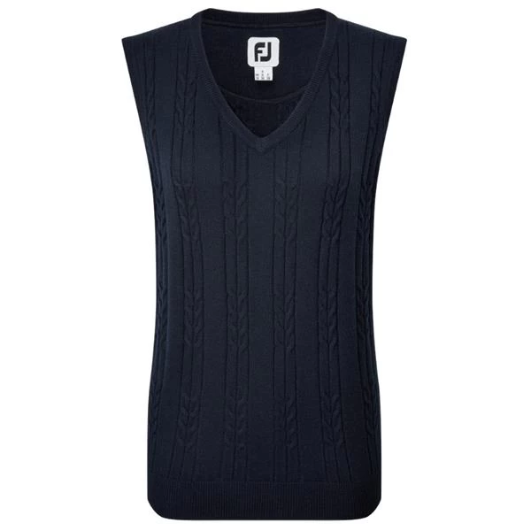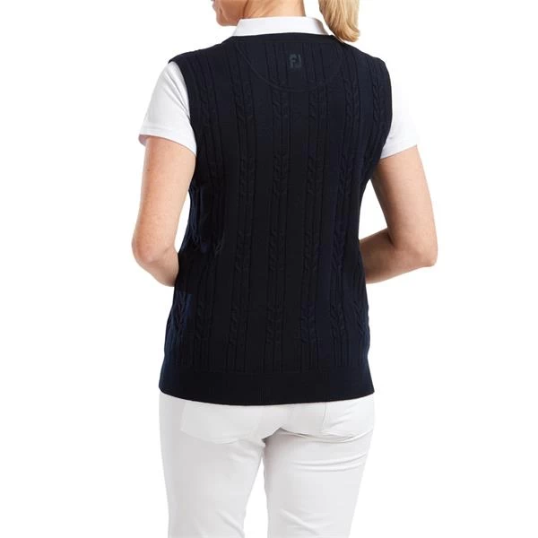 FootJoy Ladies Wool Blend Cable Knit V-Neck Top Navy 82538