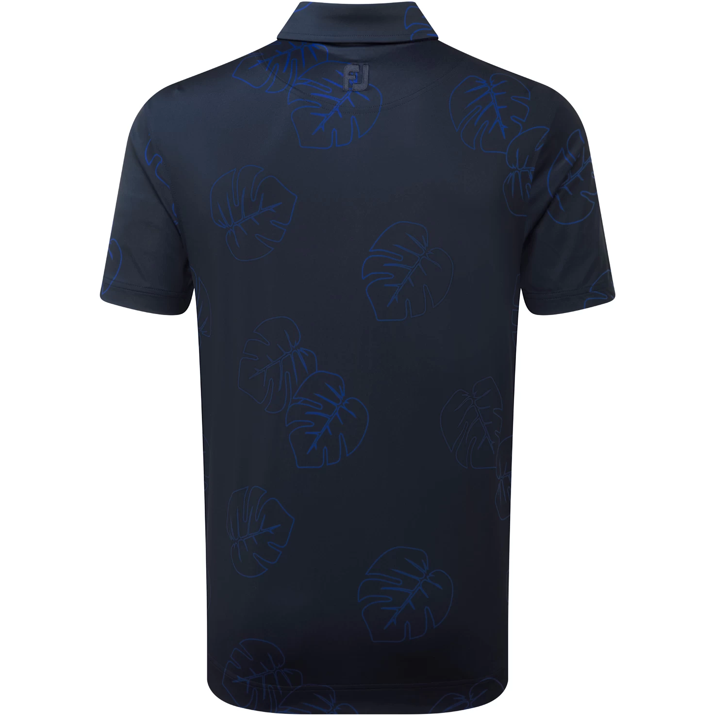 This Jungle Leaf print golf polo shirt from footjoy is from the range of FJ performance golf shirts which feature contemporary colours and patterns in a variety of styles and performance fabrics, keeping you cool and dry throughout your round featuring an athletic fit.