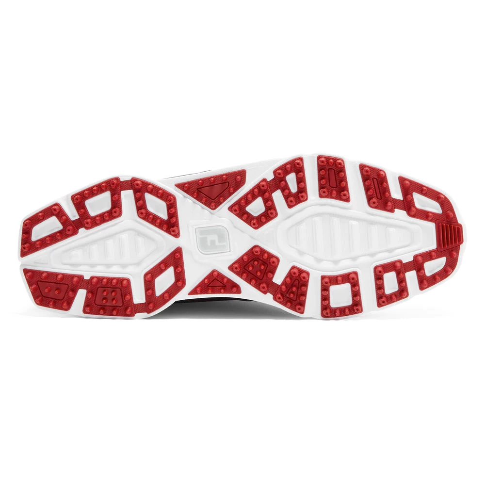Soft molded rubber traction elements ensure a slip free round with turf gripping traction.